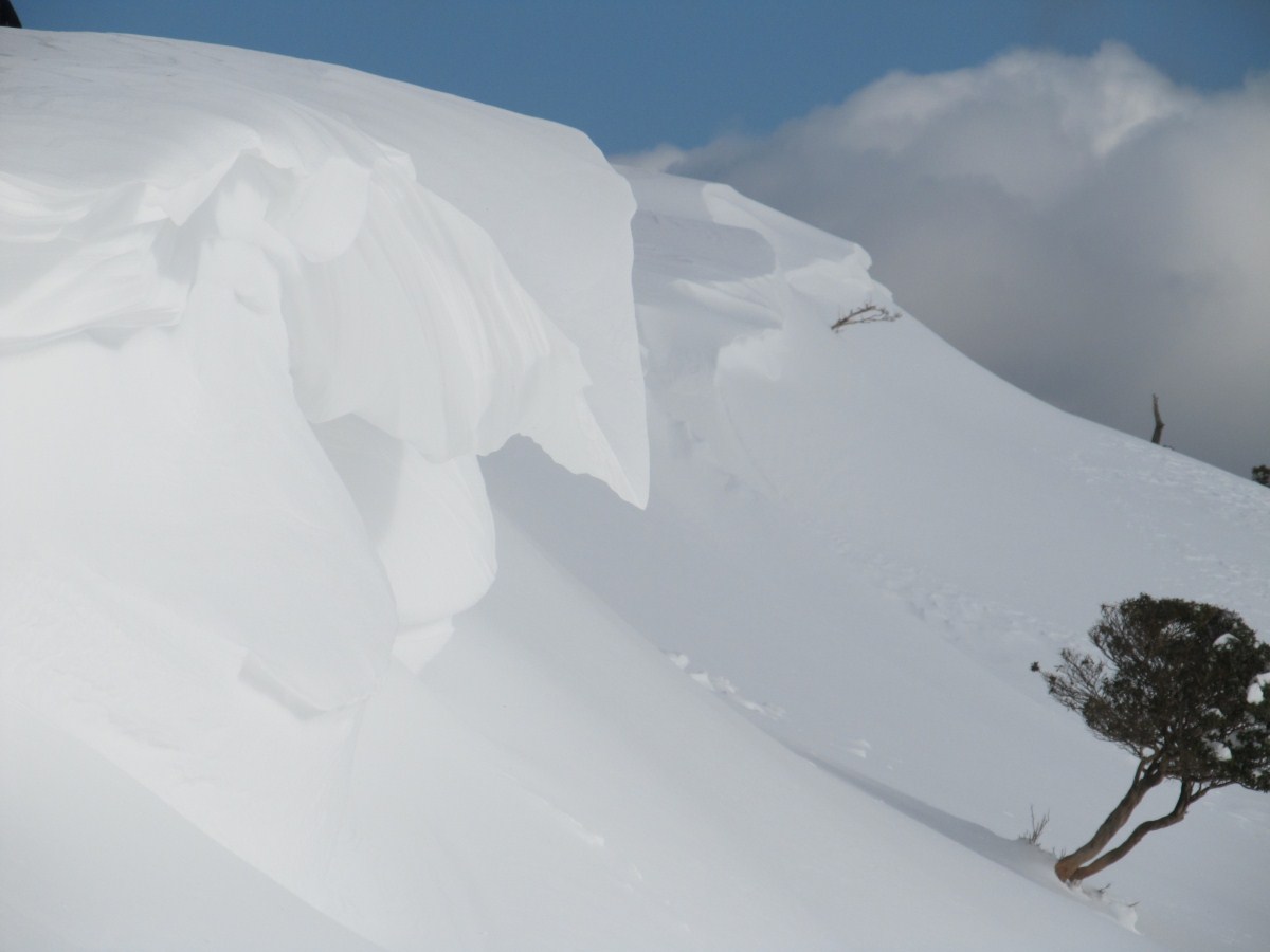 未だ雪庇が小さいですね、もう少したっぷり降って締まった頃が良い造形美が見られ歩きやすくもなるのでしょうね。   =TW=
