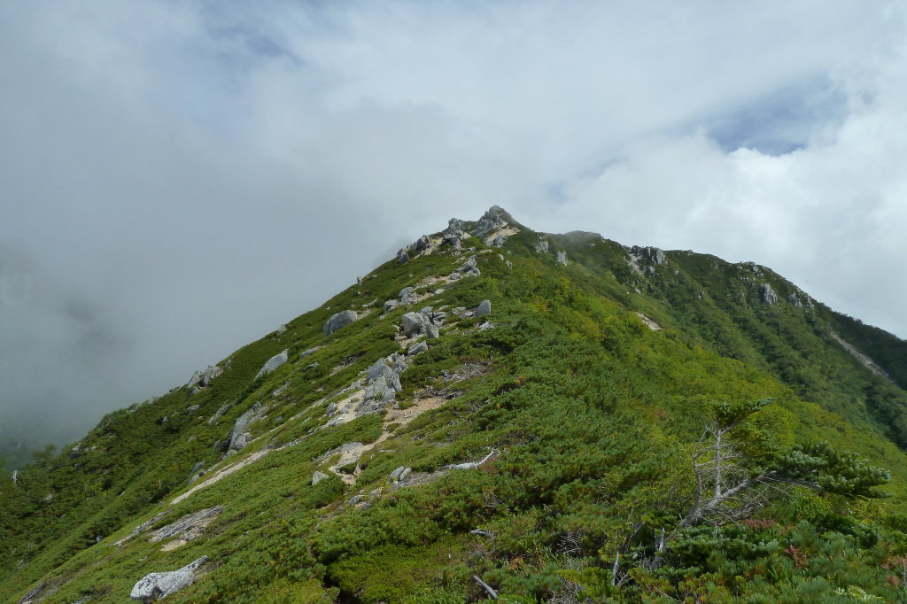 そこで休んでいると、南駒ヶ岳方面からの単独者が素通りして行くのが見えた。彼も逆回り周回組のひとりだろう。