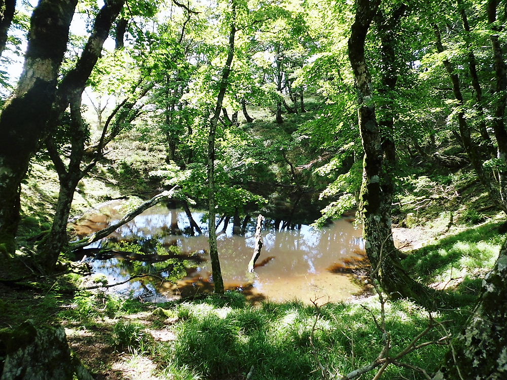 オチョコ縁ココは好い所、斜面を横切りながら風池だ。この池の水面は透けてるよ、後のは皆濁って見えるんだ。