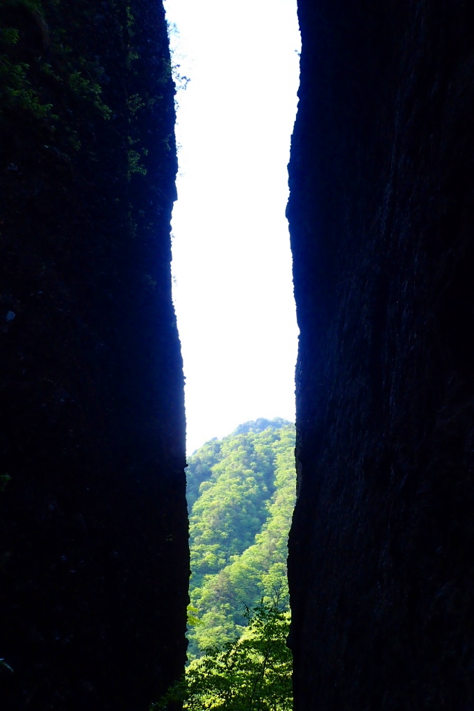 P7との狭いコルに降り立つと、壁に挟まれ洞窟に居るみたい。