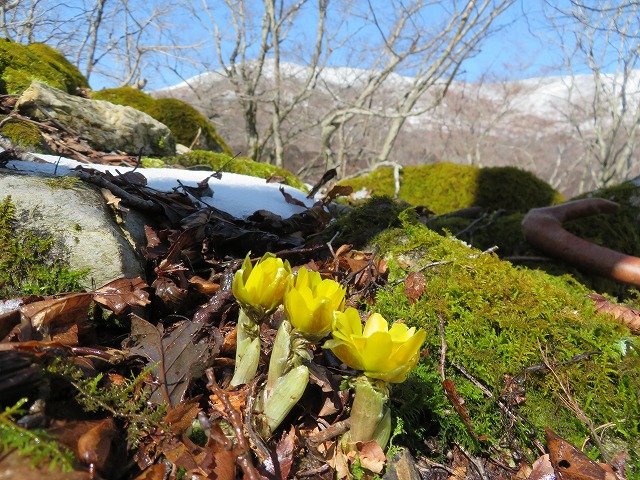 もはや引き返すこともできず先へ進むしかありません。ところどころで見かける福寿草が鍋尻山より意外ときれいに咲いて