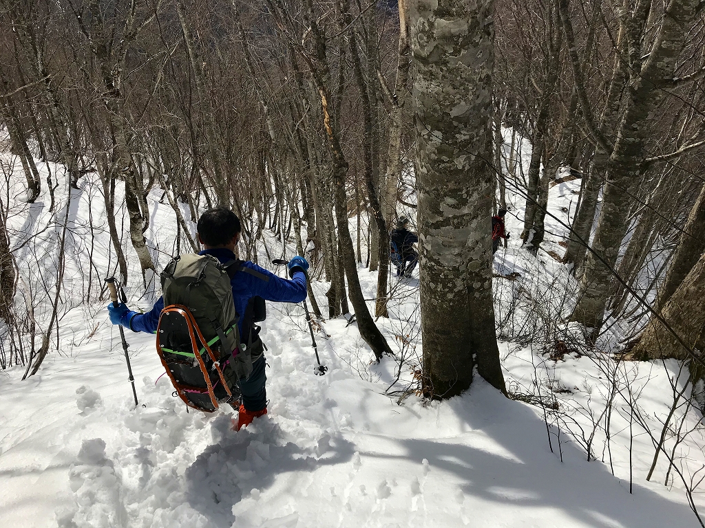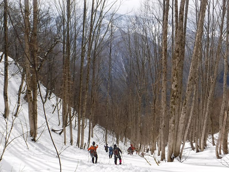 野々俣谷左岸尾根は、雪はしばらくは土の上にまだらに残る程度しかありませんでしたが、