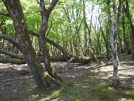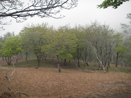 植林に覆われた山頂も東側はブナなど生えていて気持ちがいい。