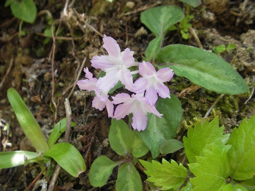 さて、もうひとつのお目当てであるイナモリソウですが、林道がうねうね曲がりくねったところへ来ると男性が道端の斜面にカメラを向けているので覗いてみると咲いていました。淡い紫色の小さな花で花弁には可愛いフリルもついていて誰が見てもキュンとくること間違いなしです。