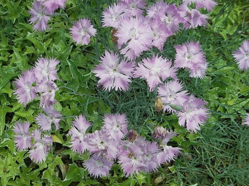 集落まで降りてくると、どの家々も花々であふれ路傍も花であふれています。どうやら地区全体で花の里を演出しているようです。民家の前に咲いていたナデシコもあでやかです。