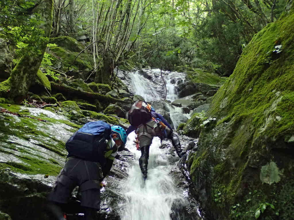 【三峰山地・沢登り】シニア隊が行く増水のワサビ谷(三峰山)