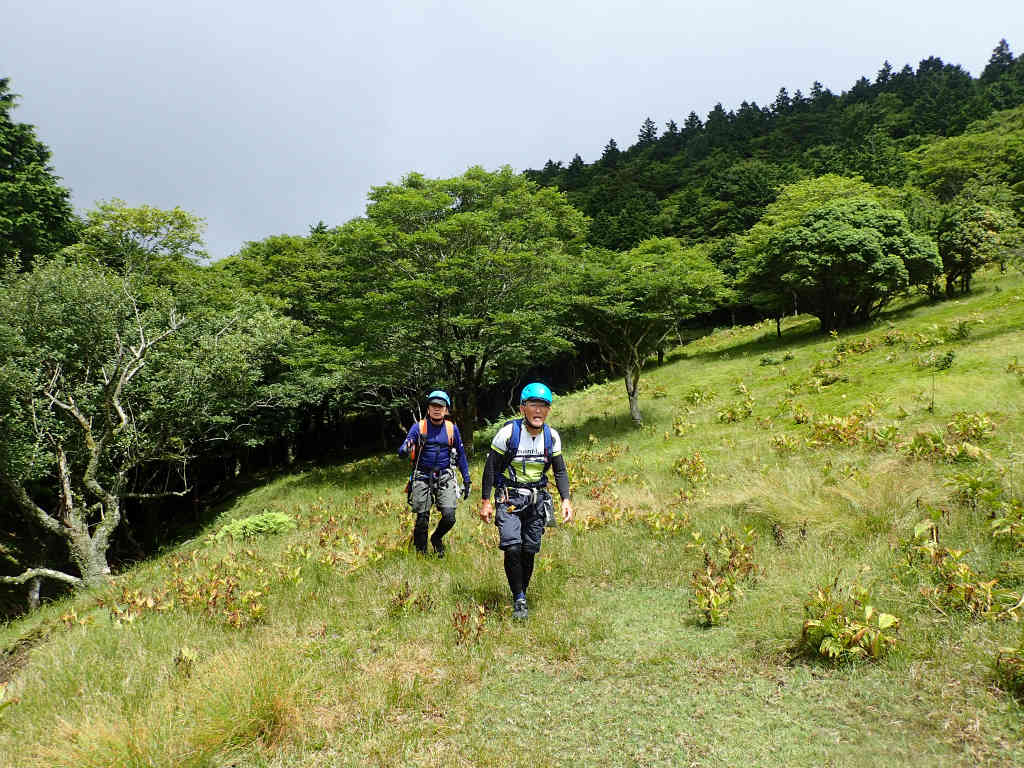そろそろ下山しようかと思っていると,ワサビ谷方面から二人連れが上がってくるのが見えた。女性二人連れのパーティーだ。平日にこんなマイナー沢で他のパーティーに出会うなんて。聞いてみると和歌山市から3時間かけて来たそうな。こんなマイナー沢にわざわざ和歌山から来るなんてと思ったが,女性だけでも安全で,いっぱい楽しむことができる沢なんてそう滅多にないかもしれない。リーダー格の女性はもう4,5回も来ているらしい。