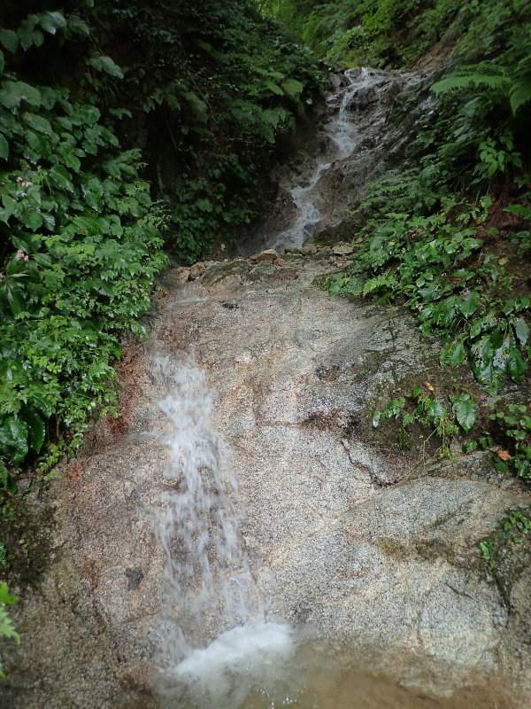 なってきた。雨具を着ると暑いのでそのまま歩く。ずっと樹林の中でまともに雨が降り注がないのが救いだ。