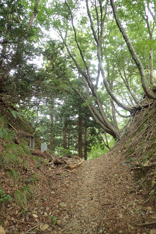 堀切となった峠にはシデの大木とお地蔵さまが一体、ひっそりと佇んで、往時を偲ぶよすがもない。