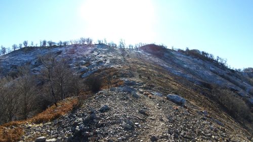 植林地から解放されで見上げた稜線と左に見える桧塚のピーク。