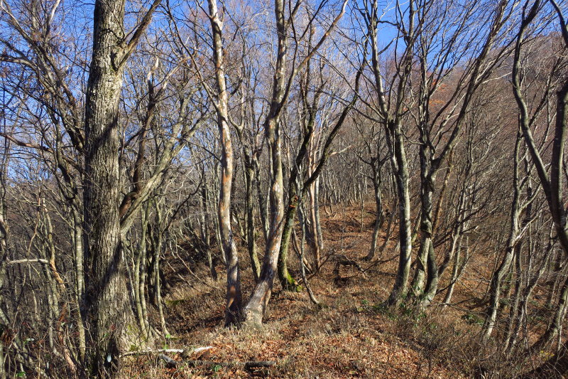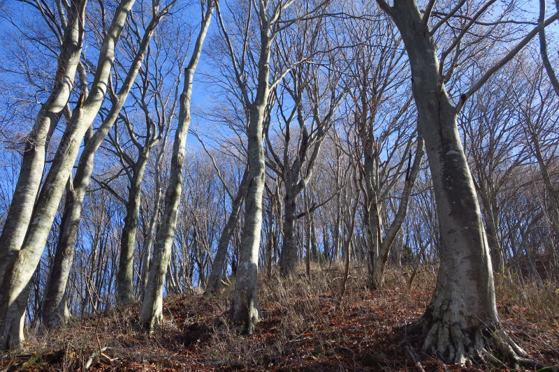 標高500mを越えると林相が変わった。ここまではミズナラが多かったのが、ブナが主体の森となる。