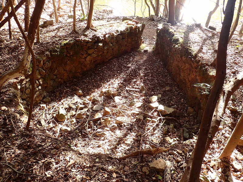 須賀利大池に着き、立派な石積みと鳥居を目にして、びっくりしました。近くには、炭焼き窯跡まで。
