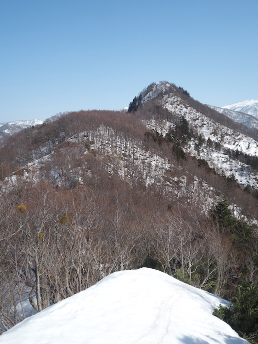 この時期になるとヤセ尾根はヤブが露出して鬱陶しくなりますね。もっとも雪がべったりだったらもっといやらしいかもですが。