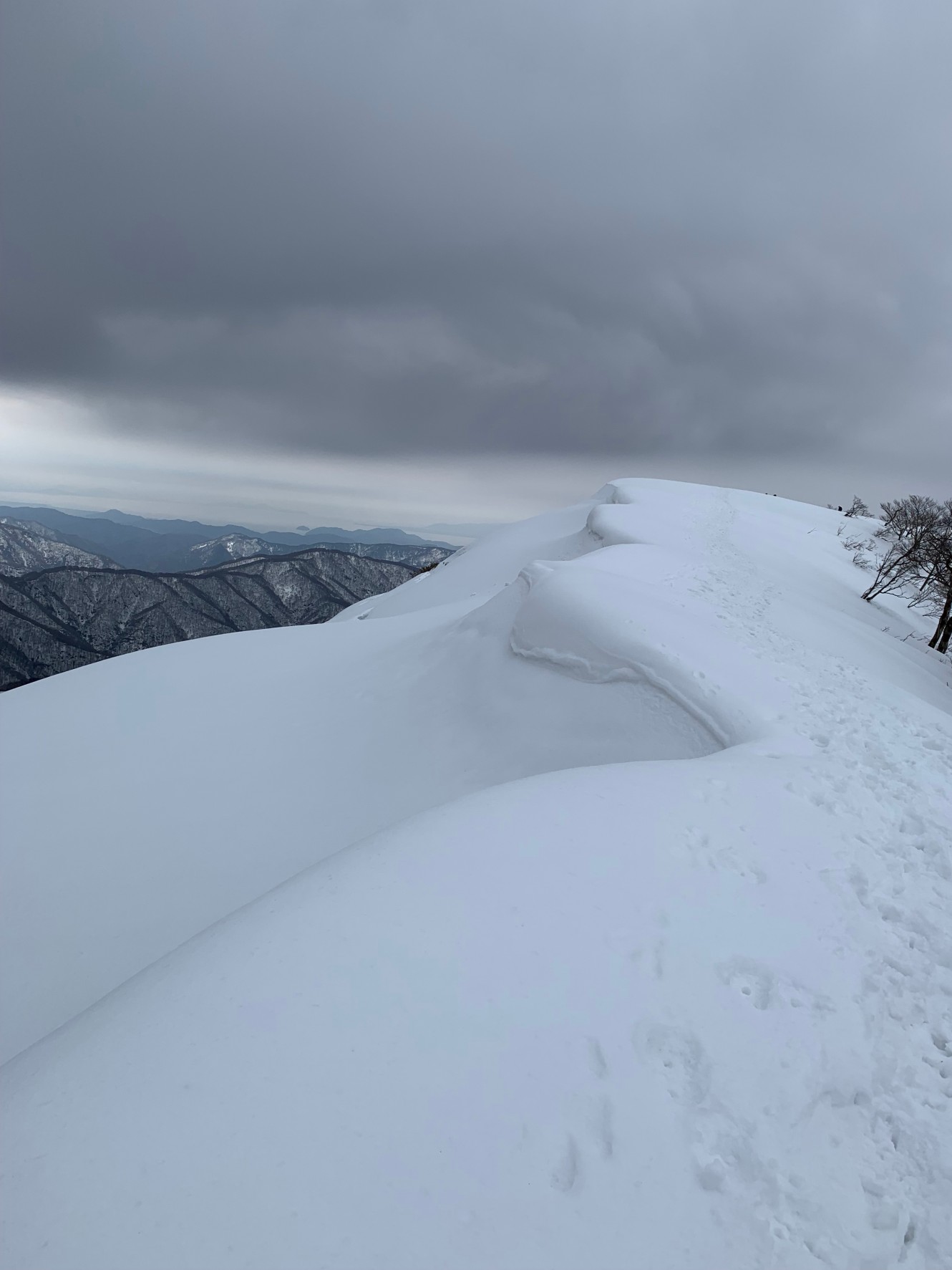 手倉山から稜線の左側はスパッと切れ落ち美しい雪庇が張り出し、