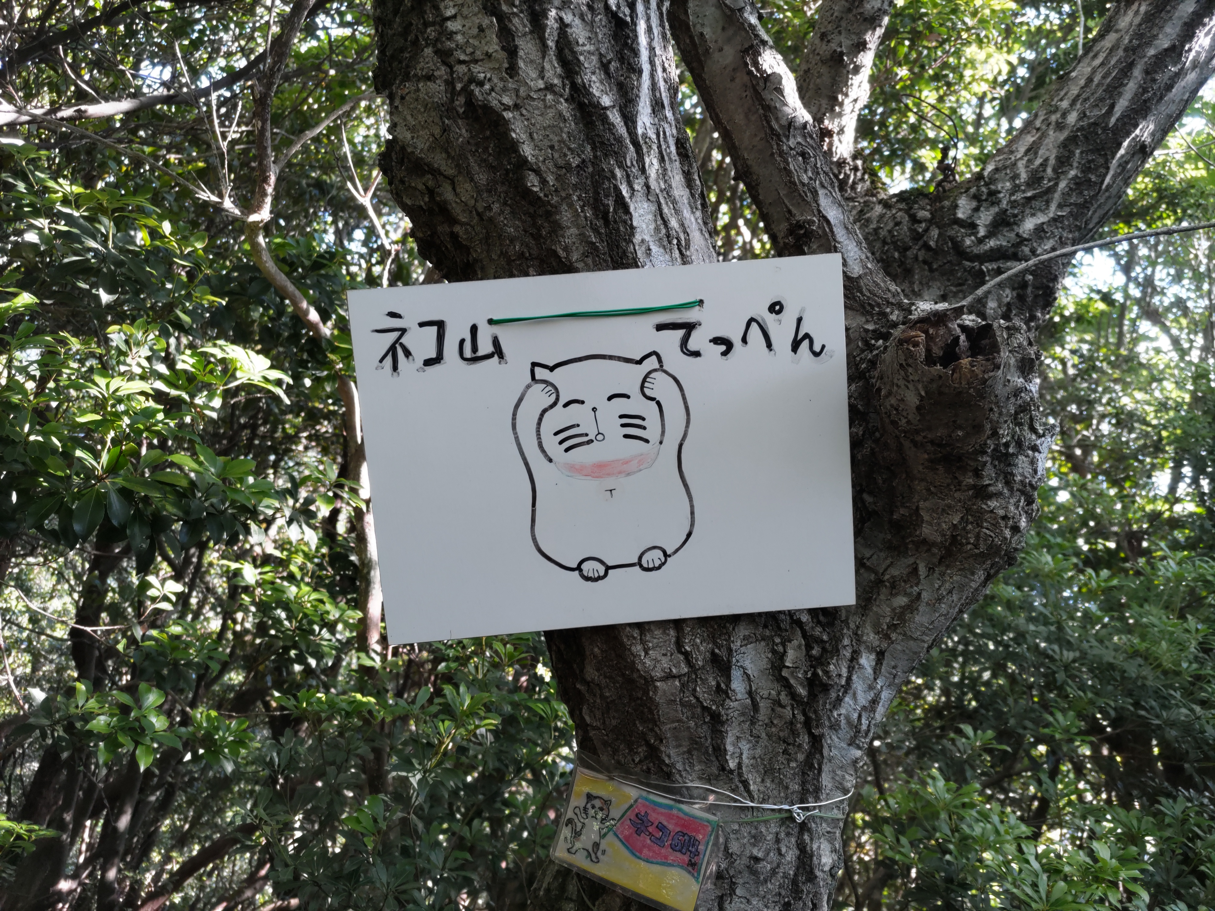 「ネコ」三角点に到着。ネコの人形が散乱していたのできれいに並べて撮影。
