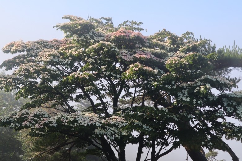 木漏れ日に雲海、ヤマボウシやネジキの花、御神木に盆栽平と盛りだくさんの魅力が詰まった山歩き。
