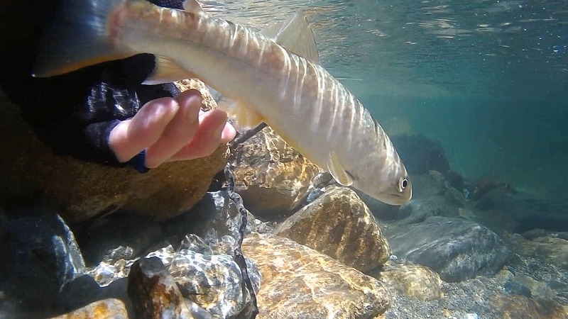 源流の無垢な岩魚くんのはずだが、流れの緩いポイントでは毛鉤を見切られた。