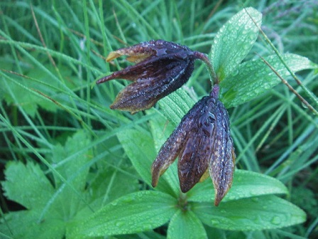 ・2278m附近の小さな湿地では池の周りにハクサンコザクラが咲いていたはずだが、これもなかった。代わりに池のほとりに黒ユリが一株咲いていた。