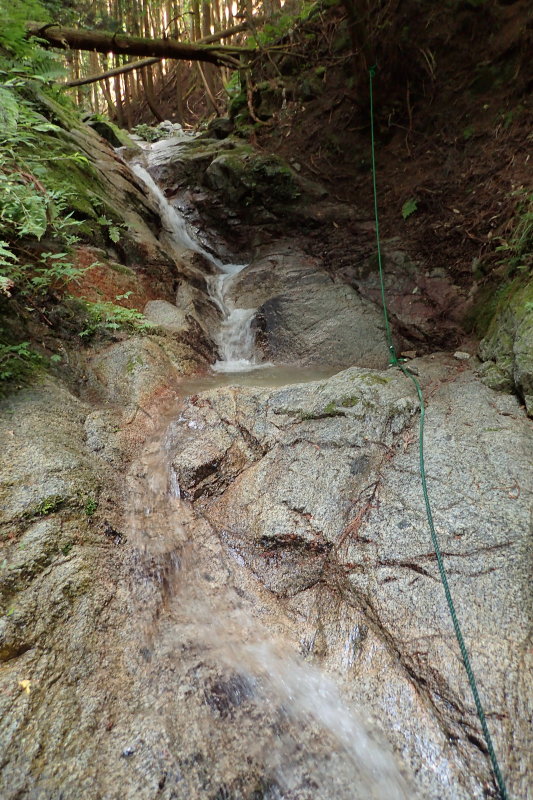 丸滝谷や石ブテ東谷と同様です。しかしこのあたりのロープは巻き道じゃなくて、滝のど真ん中にぶら下がっているのが多いのでビックリですね。