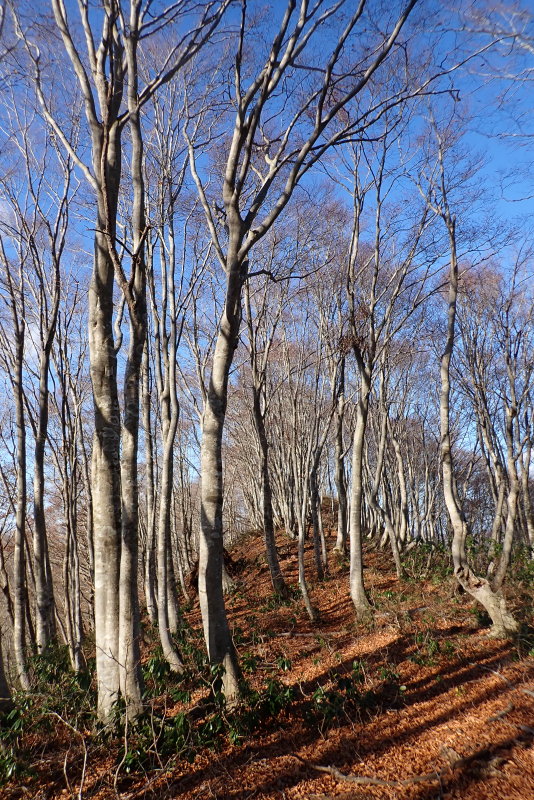 林としての完成度が高いように思う。この高度になるとブナはすっかり葉を落として冬の装いだ。