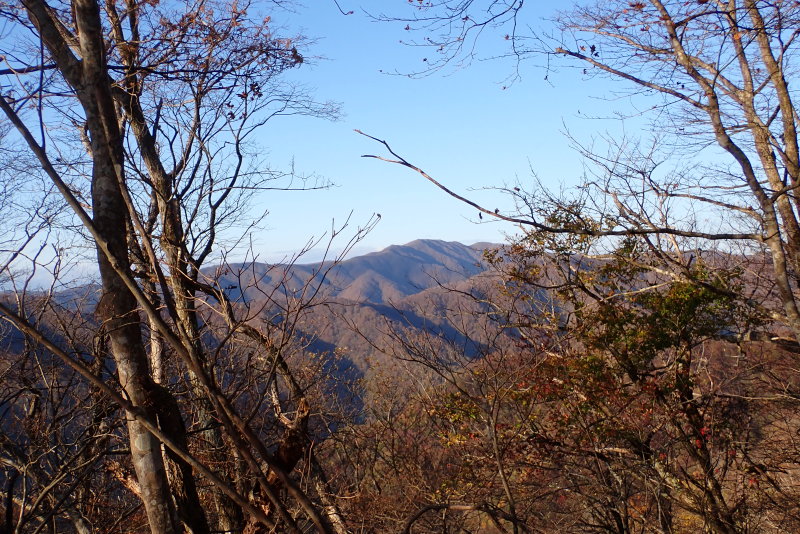 振り返ると谷山から左千方への稜線が明るい初冬の姿を見せていた。