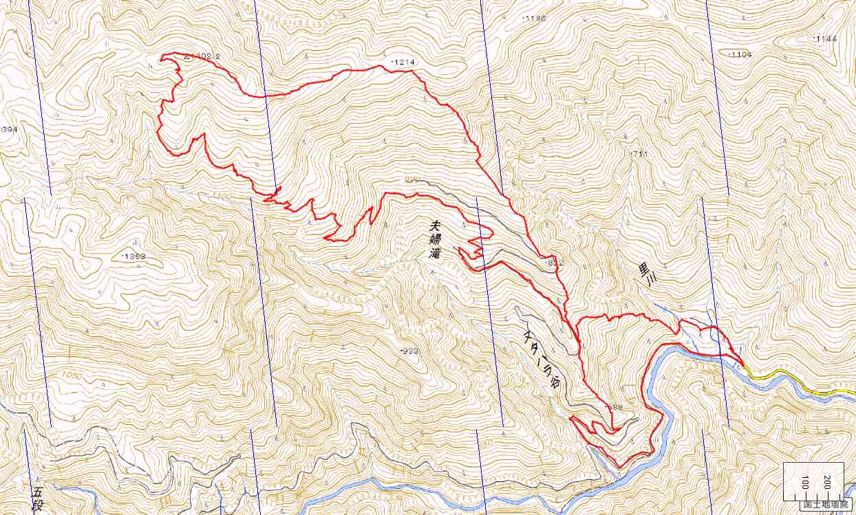 2.夫婦滝展望広場の上の軌跡が作業道の切られる前のルートです。