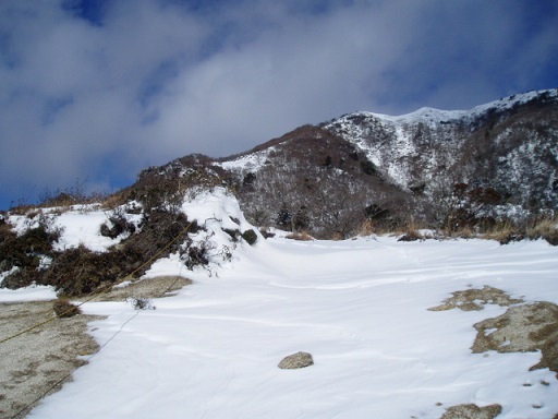 南稜線に沿った峠道で山頂を目指す。トレースはなかったが、ザレ場までは快調に登って行けた。