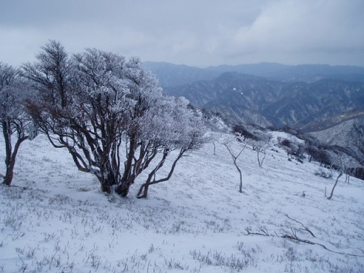 山頂の西斜面には樹氷も付いていて雰囲気も盛り立ててくれる。