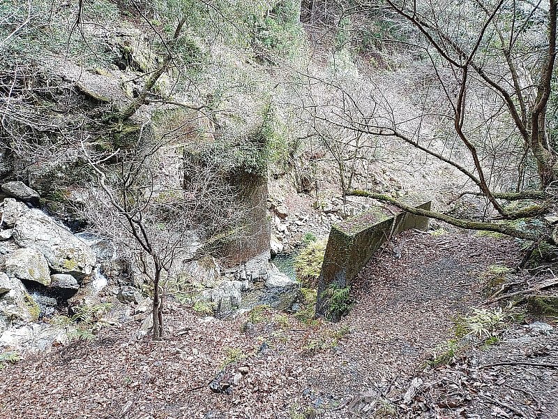 左岸の水路は埋まっているのか、流されたのか判りませんが、途中コンクリートの集水設備のような遺構が在りました。