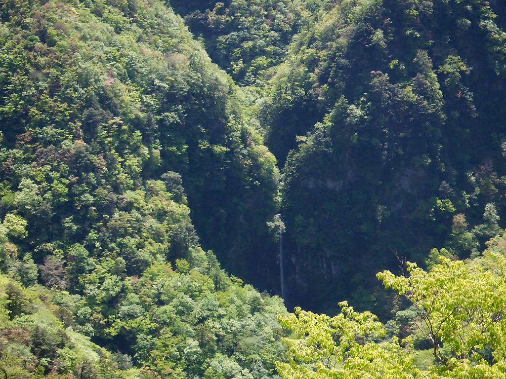 風折滝の上には遅咲きの山桜が見えるだけだ。
