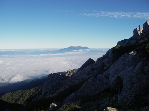 雲海に浮かぶ御嶽は噴煙も殆んど確認できないくらい落ち着いている。
