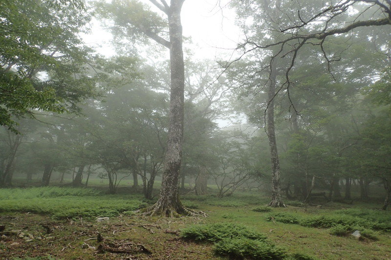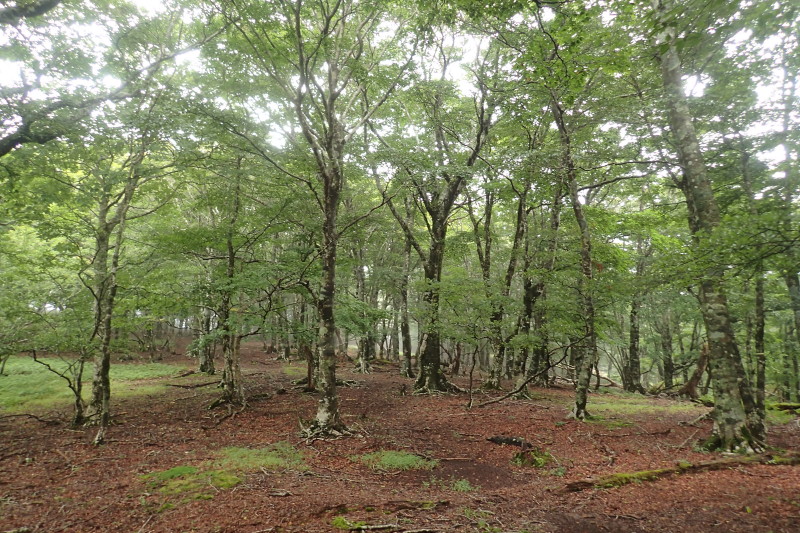 稜線と言ってもおよそ稜線らしくない、ブナ林の広がる台地だ。