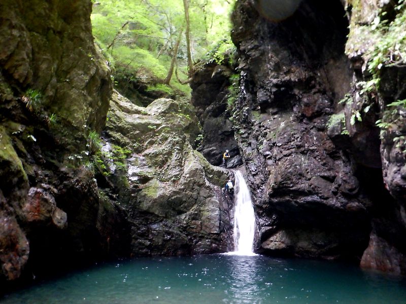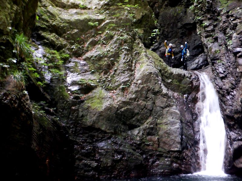 登りで滝を登っている時、ふとした拍子にふくらはぎの痛みがぶり返してしまった。肉離れでしょうね。しばらくはリハビリ沢歩きにして下さい。