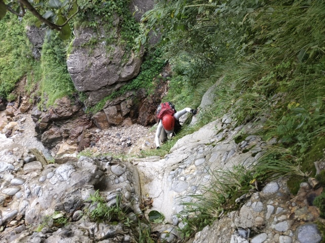 岩肌の白い5〜6mの滝がいくつか現れる。どれも直登が楽しめた。このたにでここらあたりが一番楽しいところだろう。