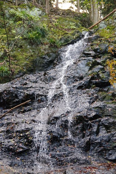 林道を進むと左手奥に滝が見える。