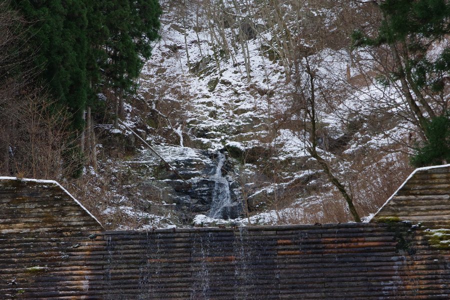 神末川本流の魚止滝は水量も多く、やっぱり凍ってはいなかった。