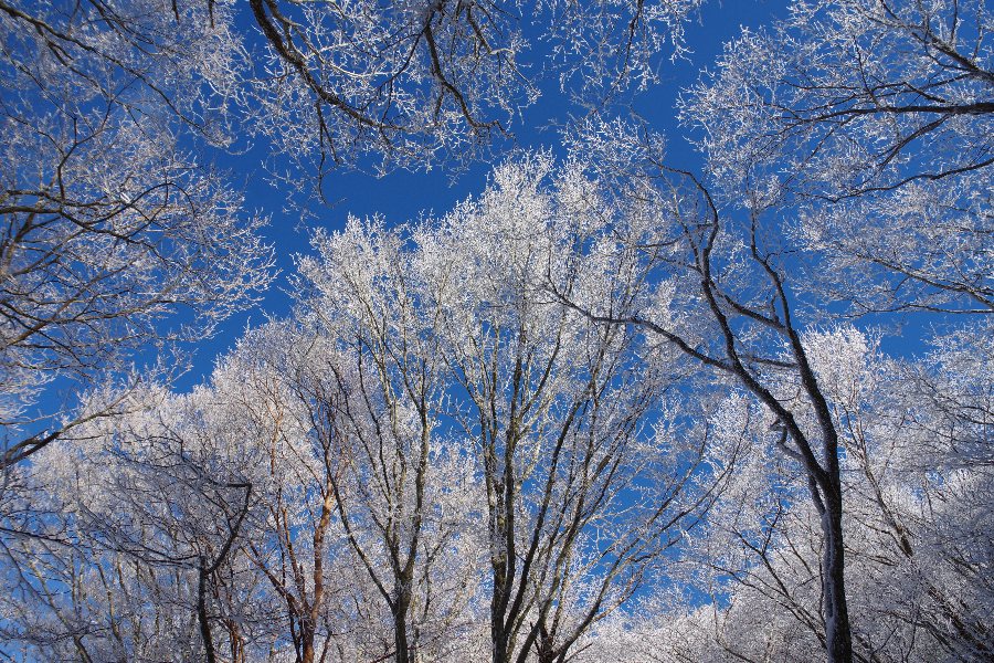 展望や青空は欲しいものの、一番育った状態の霧氷を見たいという、二律背反の難しさかな。