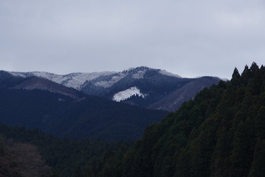 国道から見上げる大洞山雌岳(低い方)が白いような・・・
