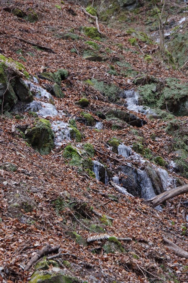 さて、本命のケヤキ谷の無名滝も半分くらい凍っている感じ。