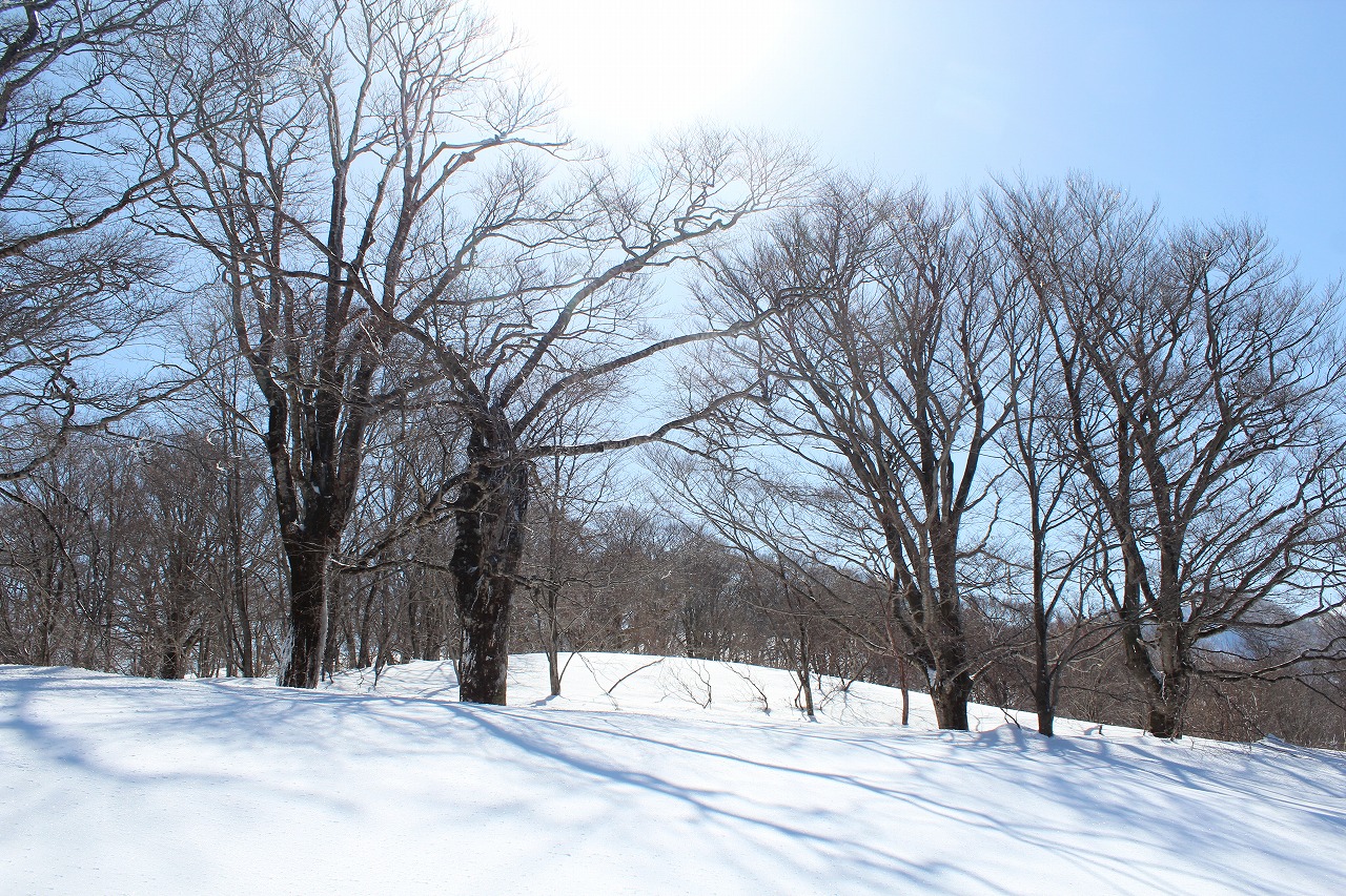 ブナの枝からは、さっきまで霧氷が付いていたのか?しずくが落ちてくる。