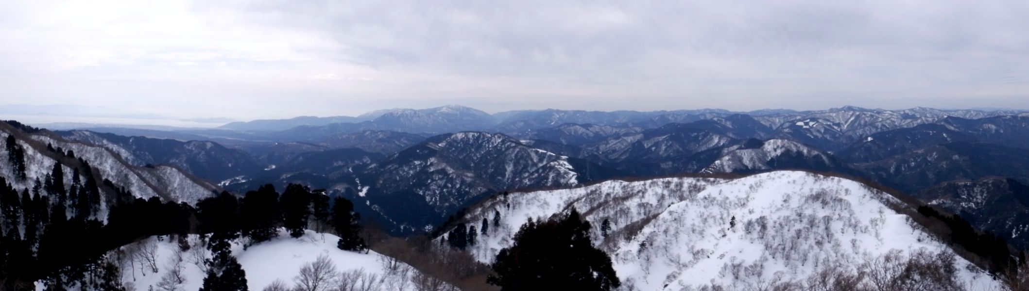 今冬は行けなかったイブネも隣に見えるし、その奥には御池岳と伊吹山の白い山容も輝いて見えた。