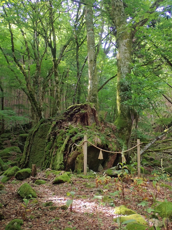遠いなあと思いながら歩いていましたが、朽ちた古木のある苔生した磐座で驚きました。