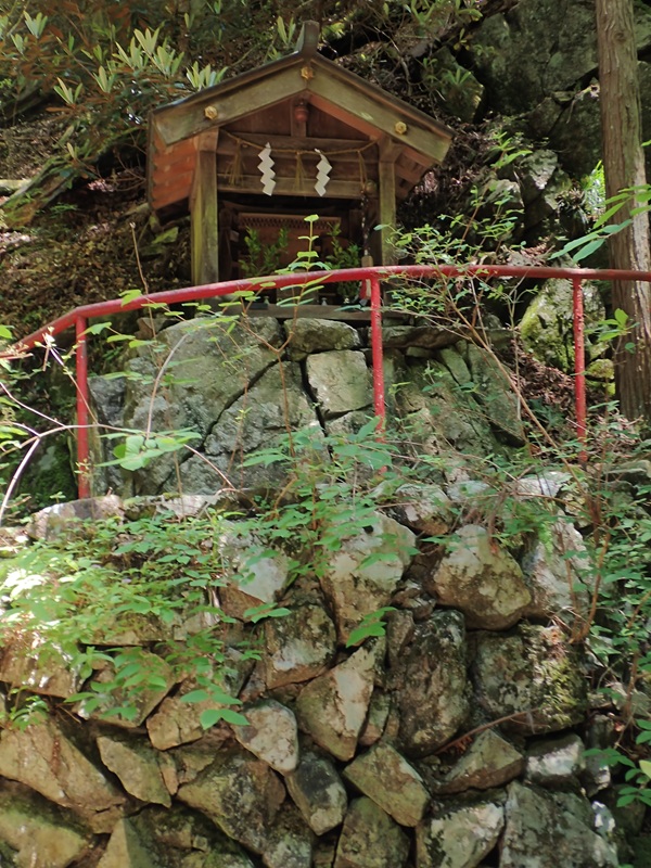 下山地点の上流には「不動さん」と呼ばれている祠と不動滝があり、菅野川本流との出会いには苔生した地蔵さんが置かれていた。菅野は伊勢本街道の起点の長谷から八里で旅籠がたくさんあった宿場町で、御杖の中心地だ。それだけに菅野と飯高を結ぶ山越えの路は、物資だけでなく行者など様々な人々が歩いたことだろう。美杉の川上若宮八幡宮の神体山になる川上十三峰の中心三峰山の麓だけに修験道の色合いを深く残す山域だった。