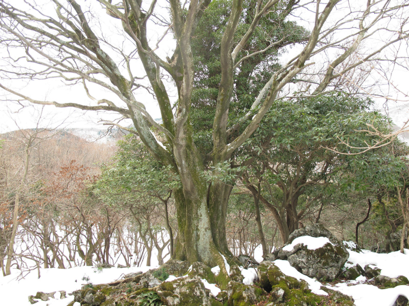 この右の尾根もエノキの大木が何本かあります。鈴鹿でここ以外でエノキを見たことないんですが。そういう意味で、さっきの木が鎮守の木と言えるのかどうか?そういうのだから鎮守の木なのか?なんてことを考えたり。
