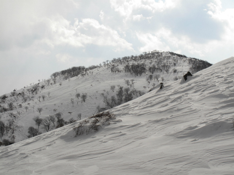 すぐに風で消えるんですよ、私が登った時は結構ありましたよ、冬場は登山道よりこちらを登る人のほうが多いのかなと思いました。数日前のトレースが出ては消えを繰り返す。あんまり使われてないみたいだ。