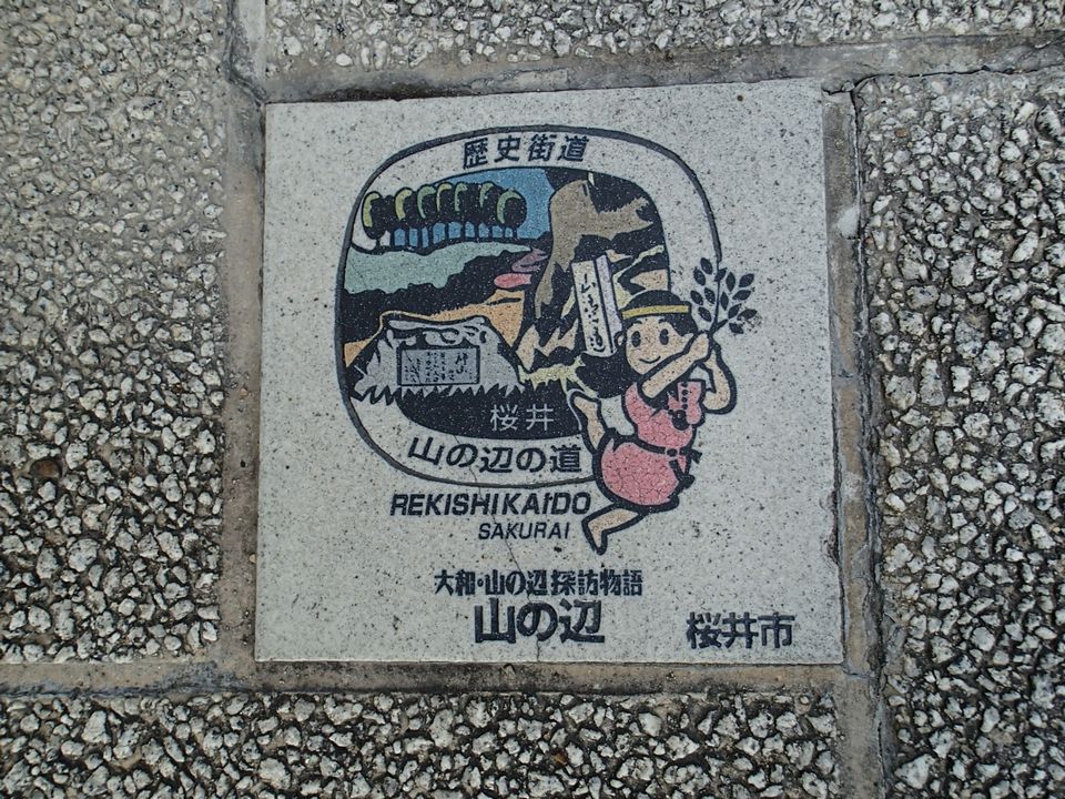 桜井市の市街地に降りると道に埋め込まれた目印を辿ることになる。