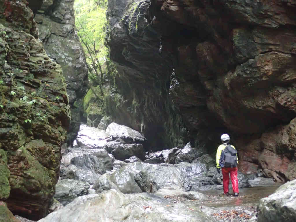 入渓してすぐに両岸が狭まった行合。水量はそれほど多くなく、簡単に通過していく。
