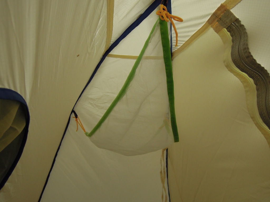 思いますが、買ってしまったものは仕方が無い。何とか快適に過ごせるようにとテント内にこんなメッシュの棚を
