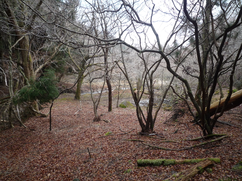 地形図に有る池ですか、「幻の池」とか呼んで無かったですか、ねずみさんの仲間が見に行ってたような。この池は見たことないです、もう使えない状態なのですかね?近くには池もある。構造からみるとこの池は人工的に作られたため池のようだ。おそらくかつては平木の集落を潤す農業用のため池として造られたのだろうが、不要になり手入れもされないうちに水漏れが起きてため池としての機能を失ったものであろう。