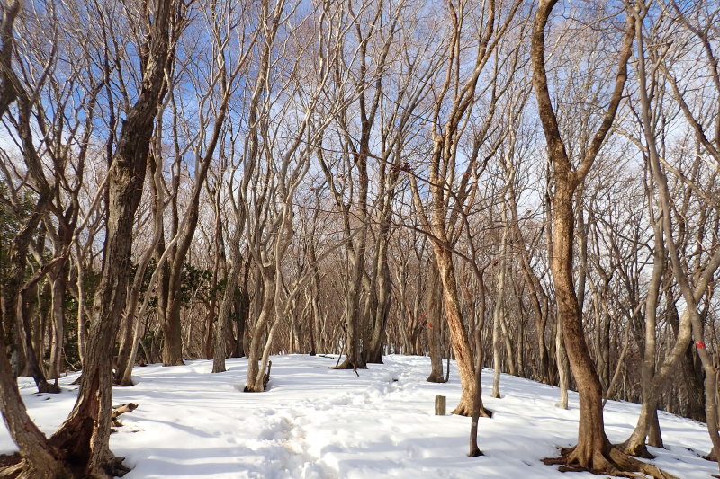 年末よりも少し積雪量が少なくなっているようですね。私が歩いた時は風下になっていて,木和田尾はあまり風が吹いていませんでした。